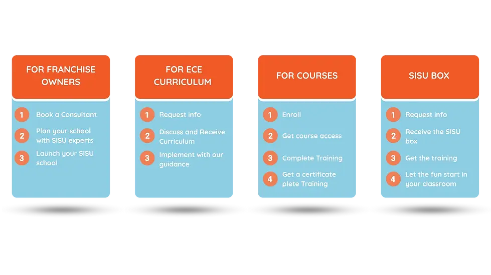 SISU school is a preschool chain authorized by the Council for Creative education. The concept is designed by early childhood Education experts, architecture professionals, and leadership experts from Finland. We want to globalize the SISU way of life through first childhood education centers with a simple licensing process and easy to implement guidelines. This is possible through our unique combination of well-adapted curriculum, high-class teacher training, carefully chosen teaching aids, pedagogically designed activities, and easy-to-use ICT tools for everyday school life.